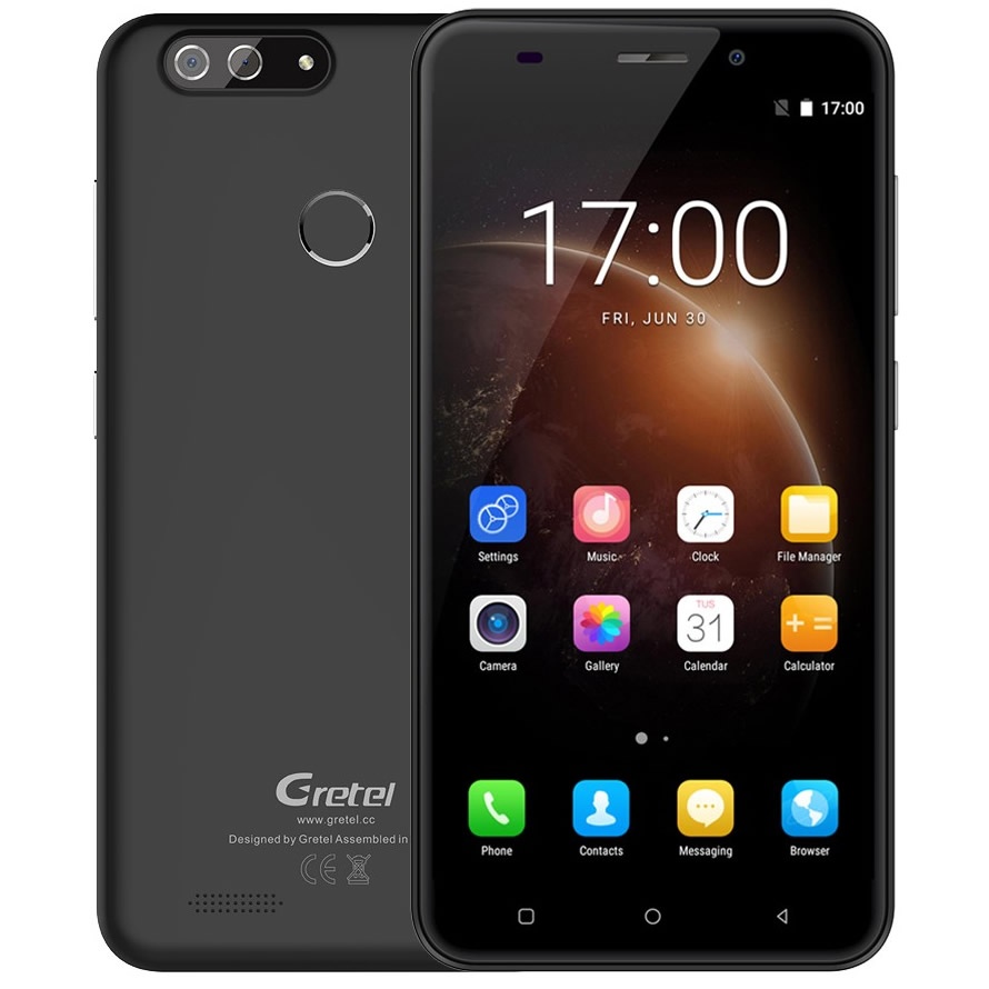 Смартфон Gretel S55 работает под управлением Android ОС 7.0. Краткие технические характеристики смартфона Gretel S55: процессор 4-ядерный Mediatek MTK6580A, 1.3 ГГц, память 1 ГБ ОЗУ, 16 ГБ ПЗУ, интерфейсы Bluetooth 4.0, USB 2.0, Wi-Fi, камеры 8+0.3 Мпикс. и 2.0 Мпикс., чипы GPS. Поддержка 2-х SIM карт. Дисплей 5,5 дюймов с HD разрешением, аккумулятор на 2600 мАч.